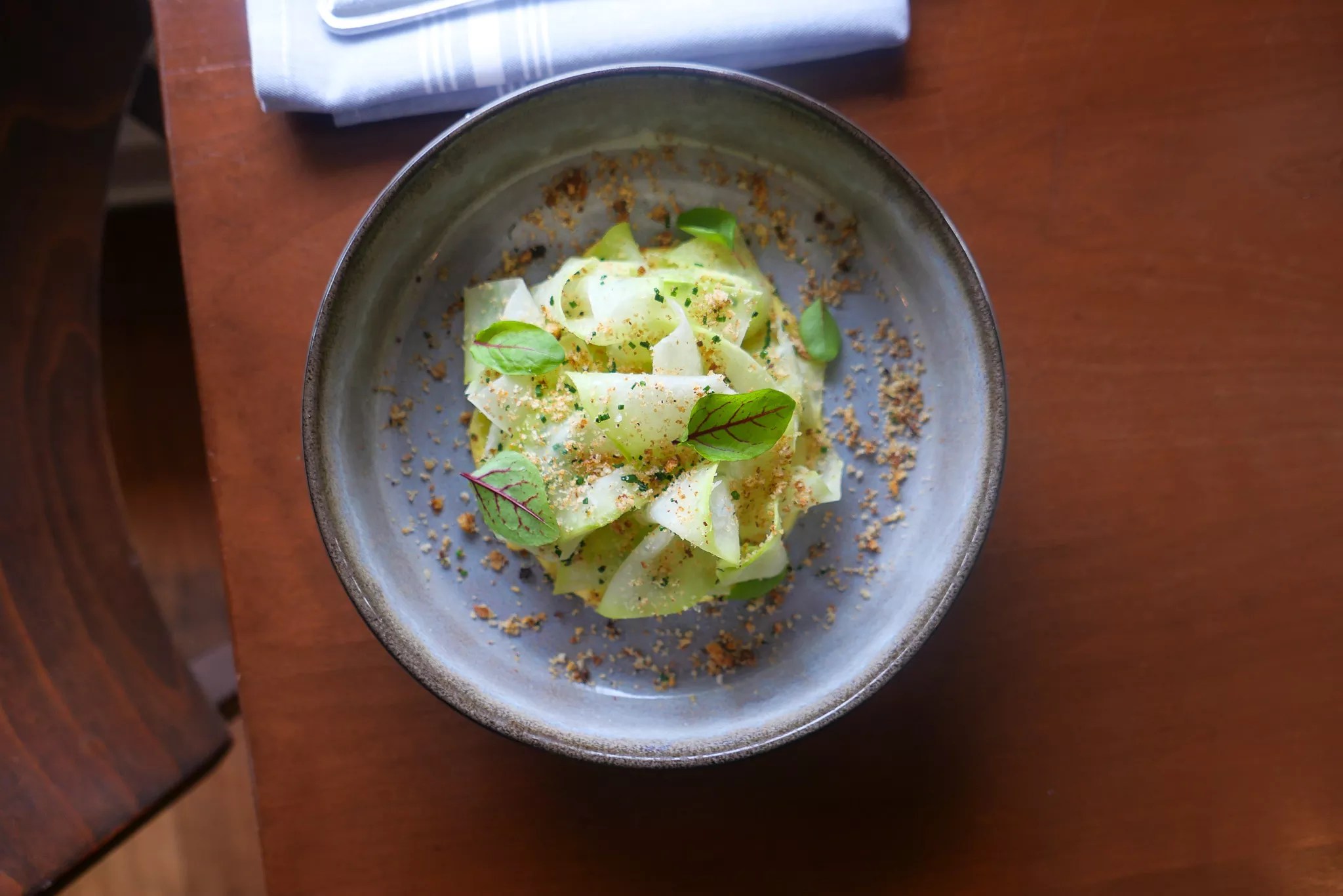 Prices reflect the status of the restaurant, too. Small plates range from $17.17 for a winter citrus salad or $20.20 for grilled octopus; main courses cost $42.42 for the braised lamb shank over polenta, and $26.26 for celery root falafel with white yam hummus. The Cru Menu, aka tasting menu, runs $90.90 for five courses. If those price tags look strange, it’s because 1 percent of every sale goes to Zero Food Print, a nonprofit helping farmers with regenerative farming.