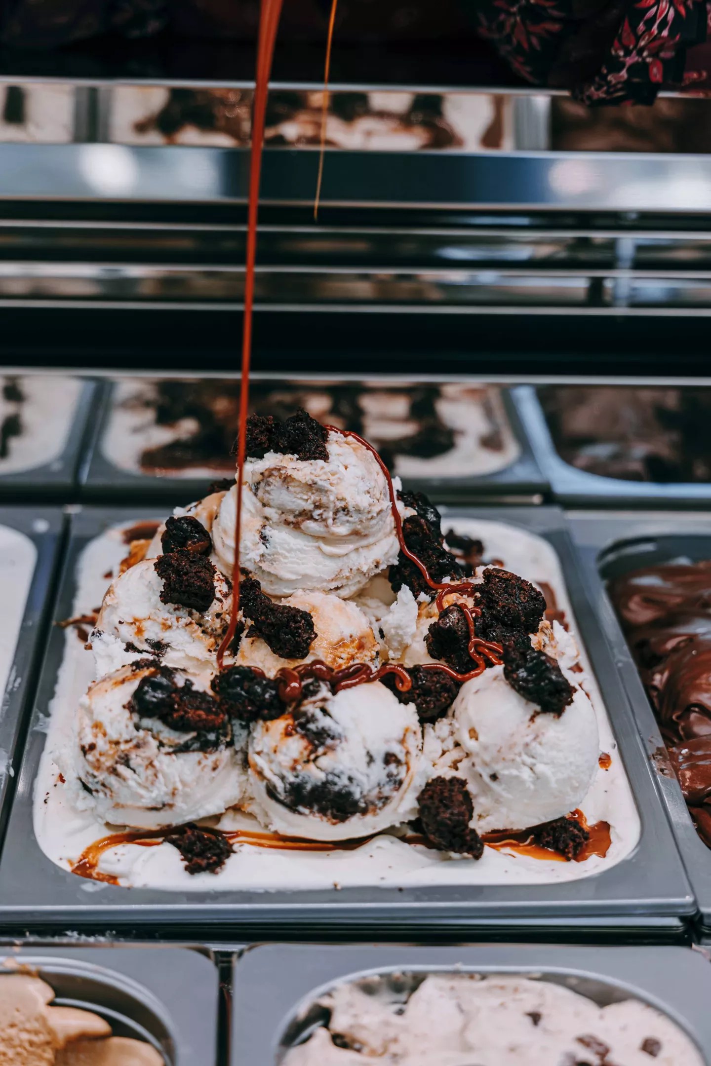 Anybody looking for a quick pick-me-up can peruse the large coffee menu as well, which includes items like matcha affogato, Vietnamese coffee and a rotating selection of seasonal hot chocolates. Other non-frozen desserts include crepes, brownies and Belgian waffles, though all menu items vary by store and season.
