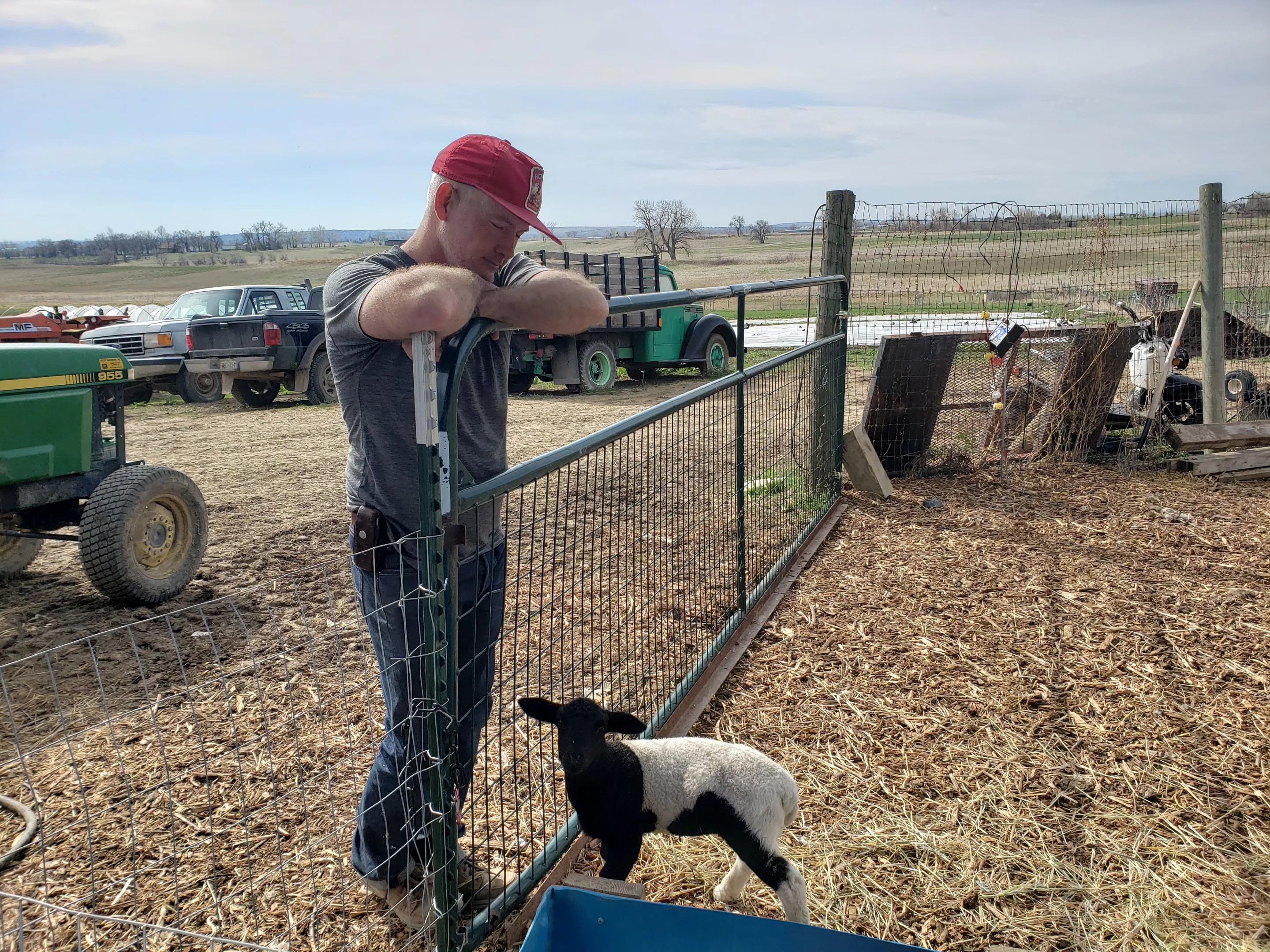 Marcus McCauley inspecting the new lambs.