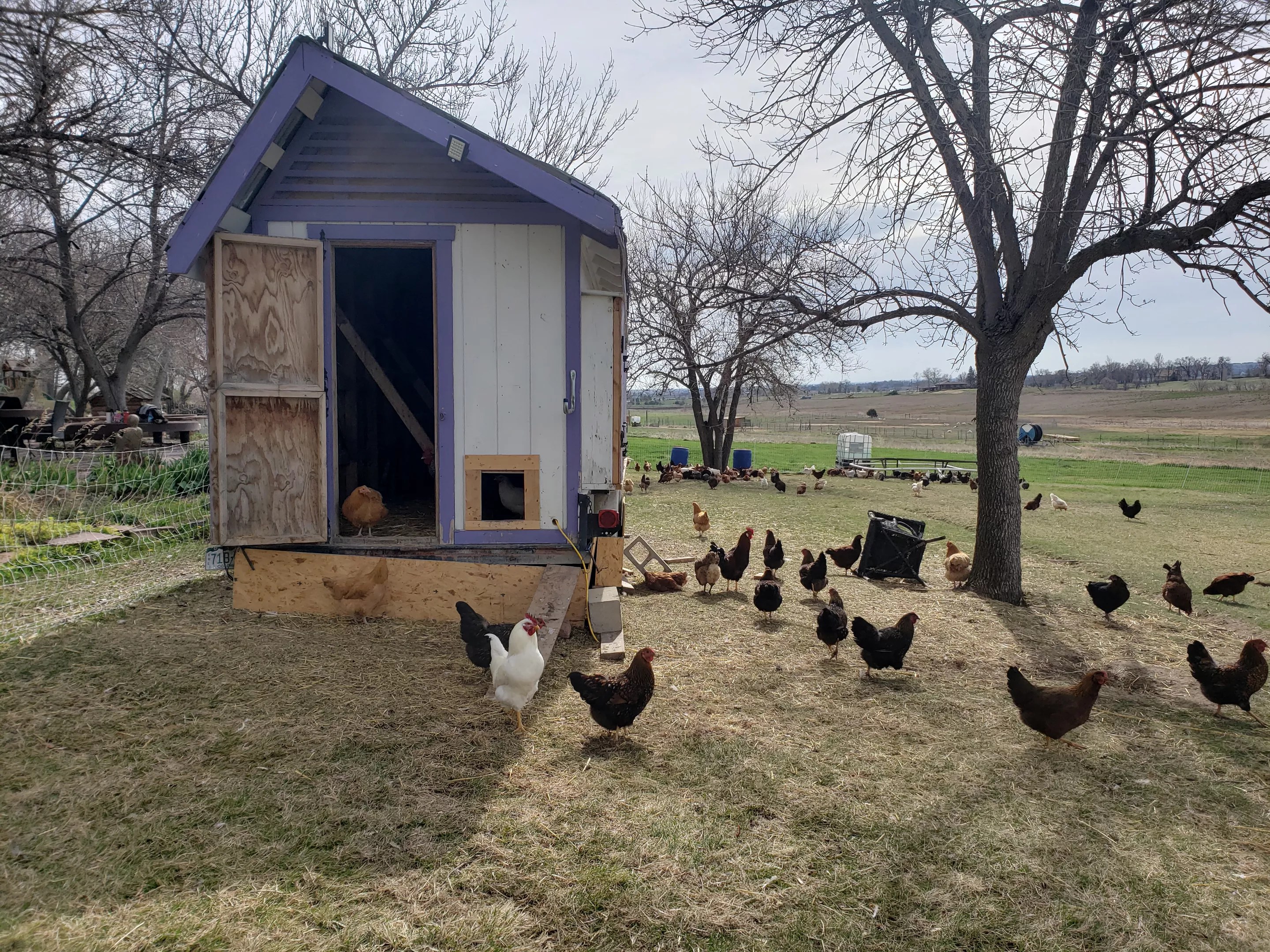 McCauley grew up in Oklahoma and has been in Colorado for ten years. He started his farm seven years ago and lives on the property, in an old homesteader’s cottage, with his wife and son. The big house next to it was built in the 1970s and looks like the perfect farm getaway, which anyone can experience by booking it on Airbnb. Chickens roam free in an enclosed outdoor space. Linnea Covington