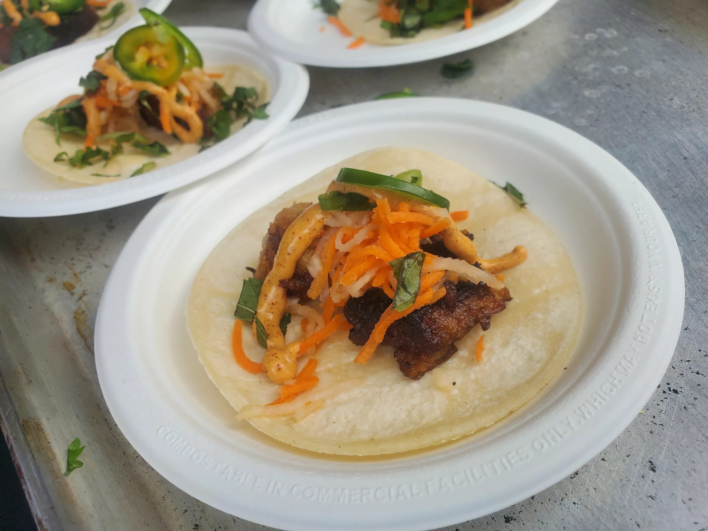 In the VIP area, El Tamarindo was the place to go for anyone looking to feel the burn. Its tacos were being served with a choice of three salsas, two of which brought a whole lot of heat, especially if you also added a roasted jalapeño, too. The restaurant, located at 7700 East Colfax Avenue, specializes in food from Central America, with a menu that includes pupusas, tajadas (fried plantains) and a shrimp cocktail that landed it on our list of must-stops along RTD bus route 6. McDevitt Taco Supply took inspiration from banh mi for its tacos. Molly Martin
