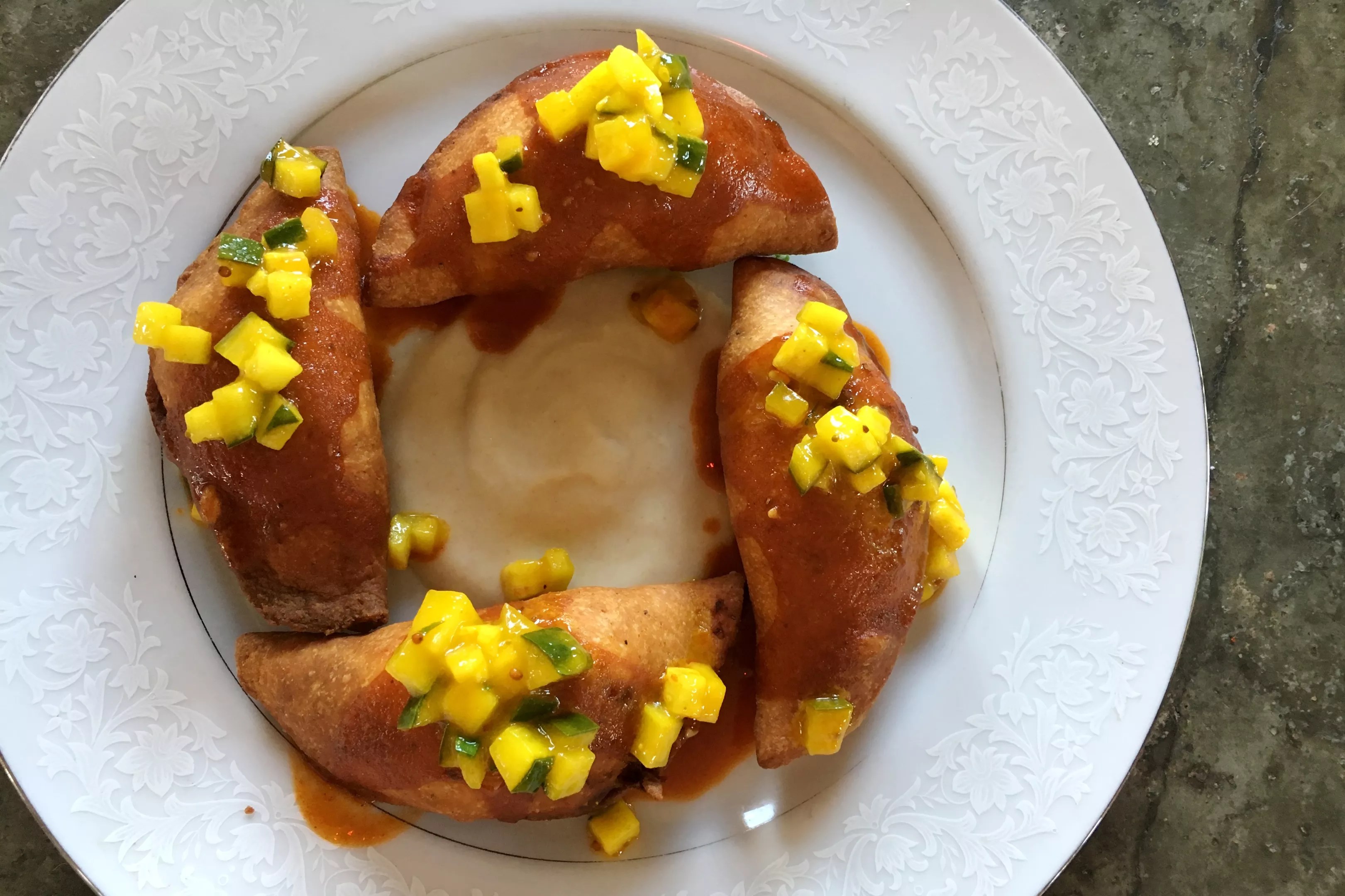 Pork green chile pierogi.