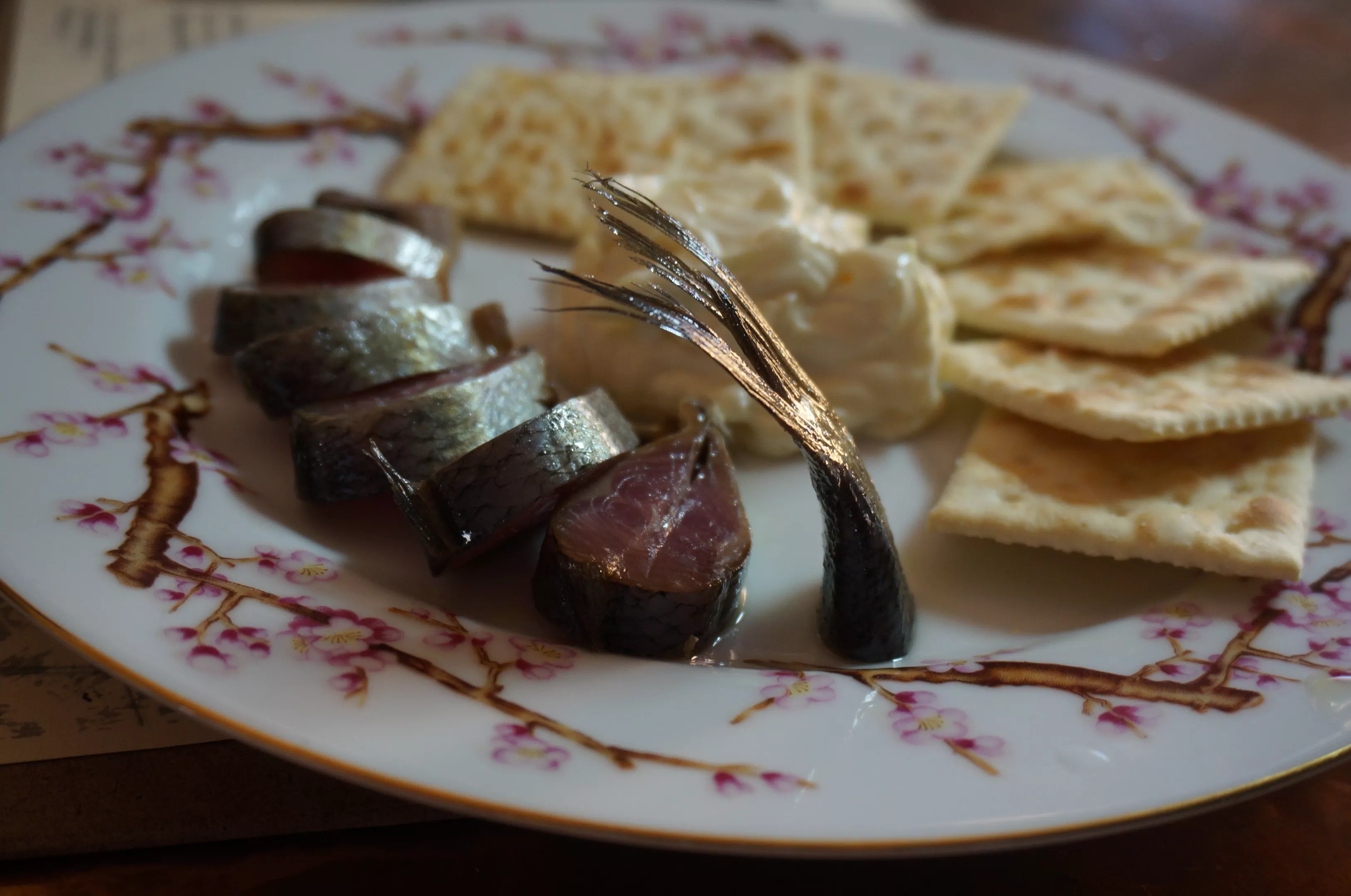 Sardine with saltines.