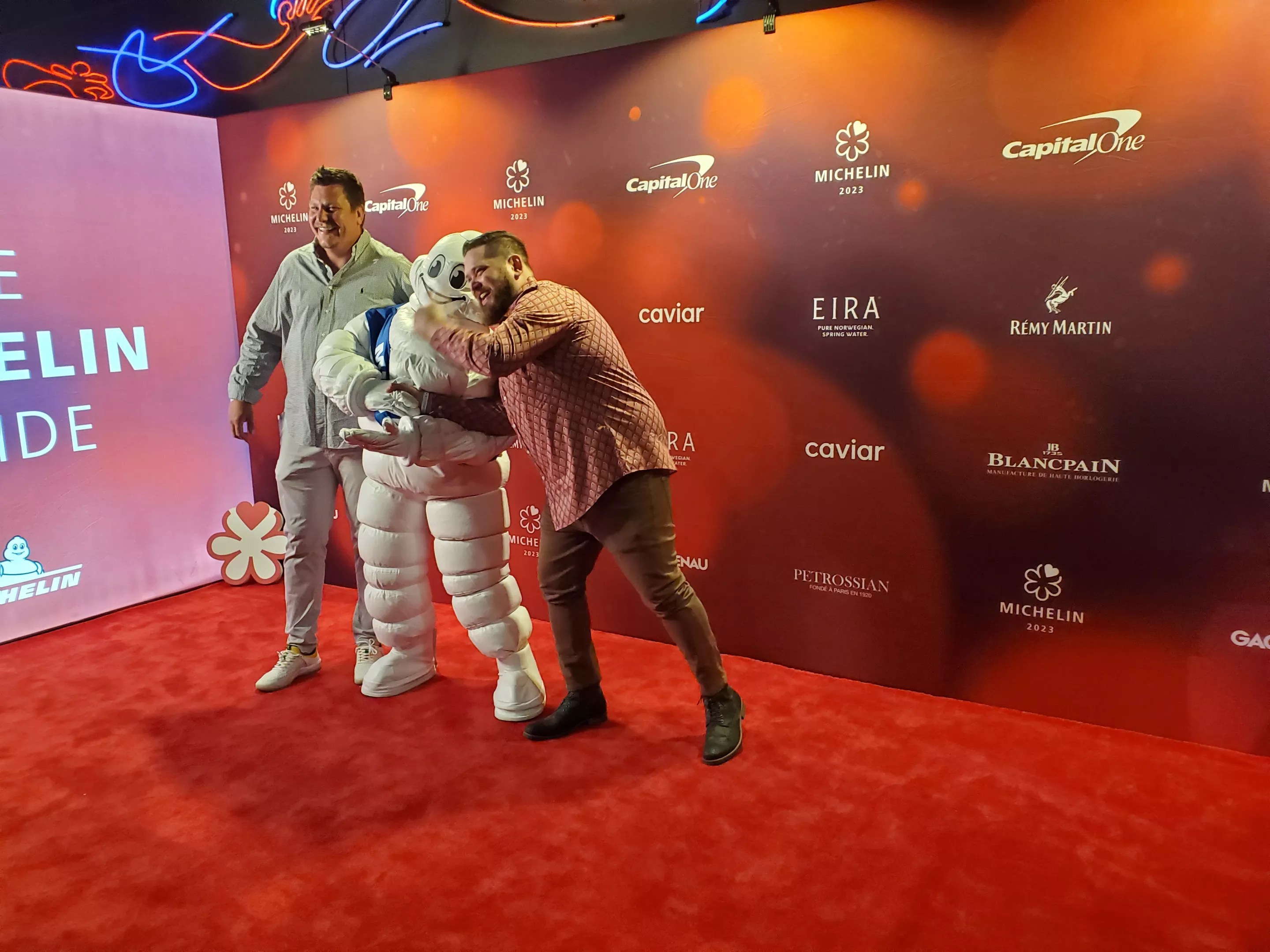 The awkwardness continued as the ceremony commenced, emceed by travel filmmaker and vlogger Juliana Broste. While she was enthusiastic, there were lots of long, silent pauses as honorees donned their Michelin chef coats in a dark corner of the stage before posing with Bibendum for photos.