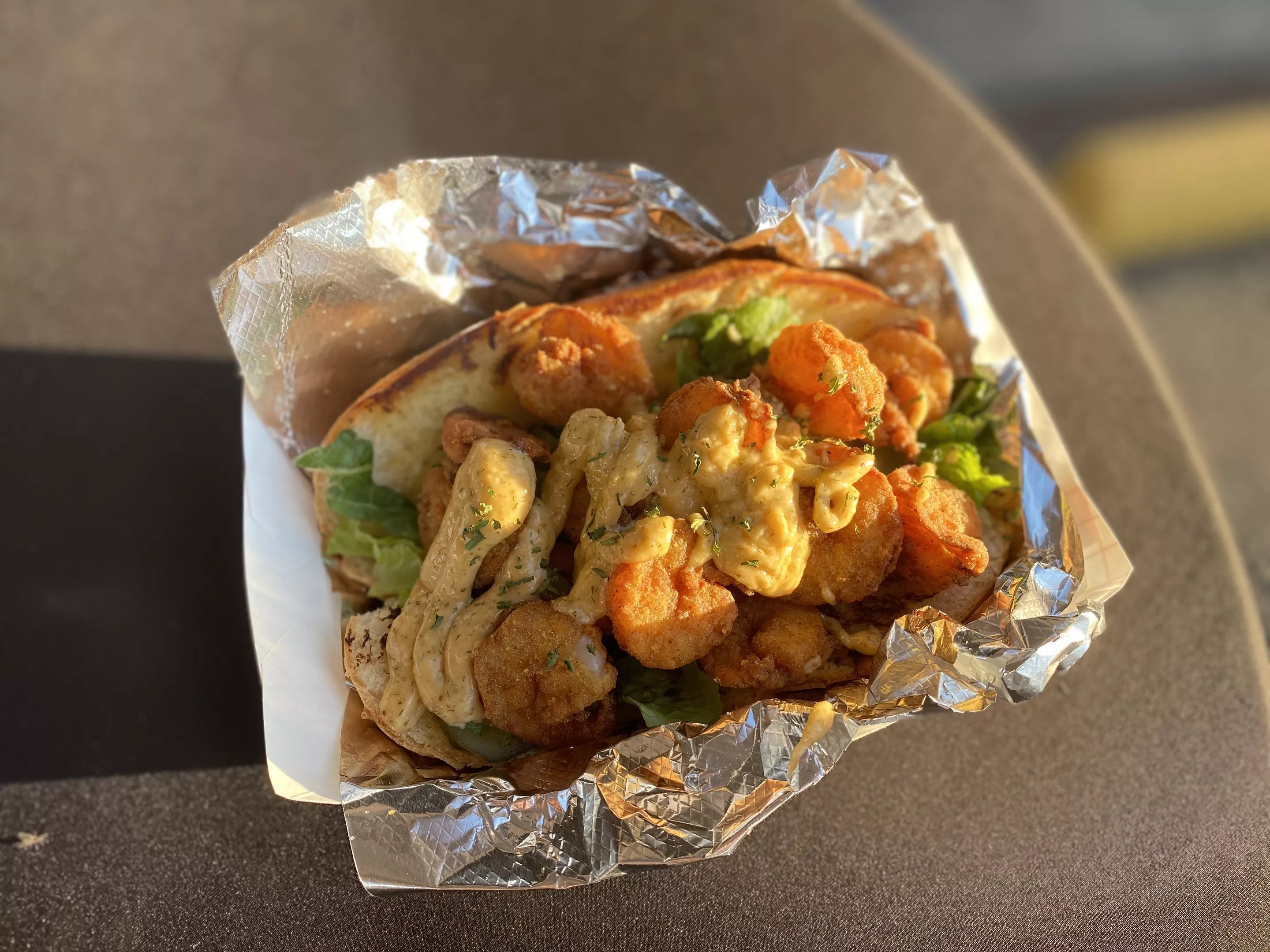 The fried shrimp po’boy is a classic hit.