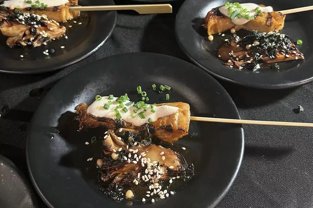 Whole foods create flavorful dishes, like this grilled mushroom and yuba course served last month.