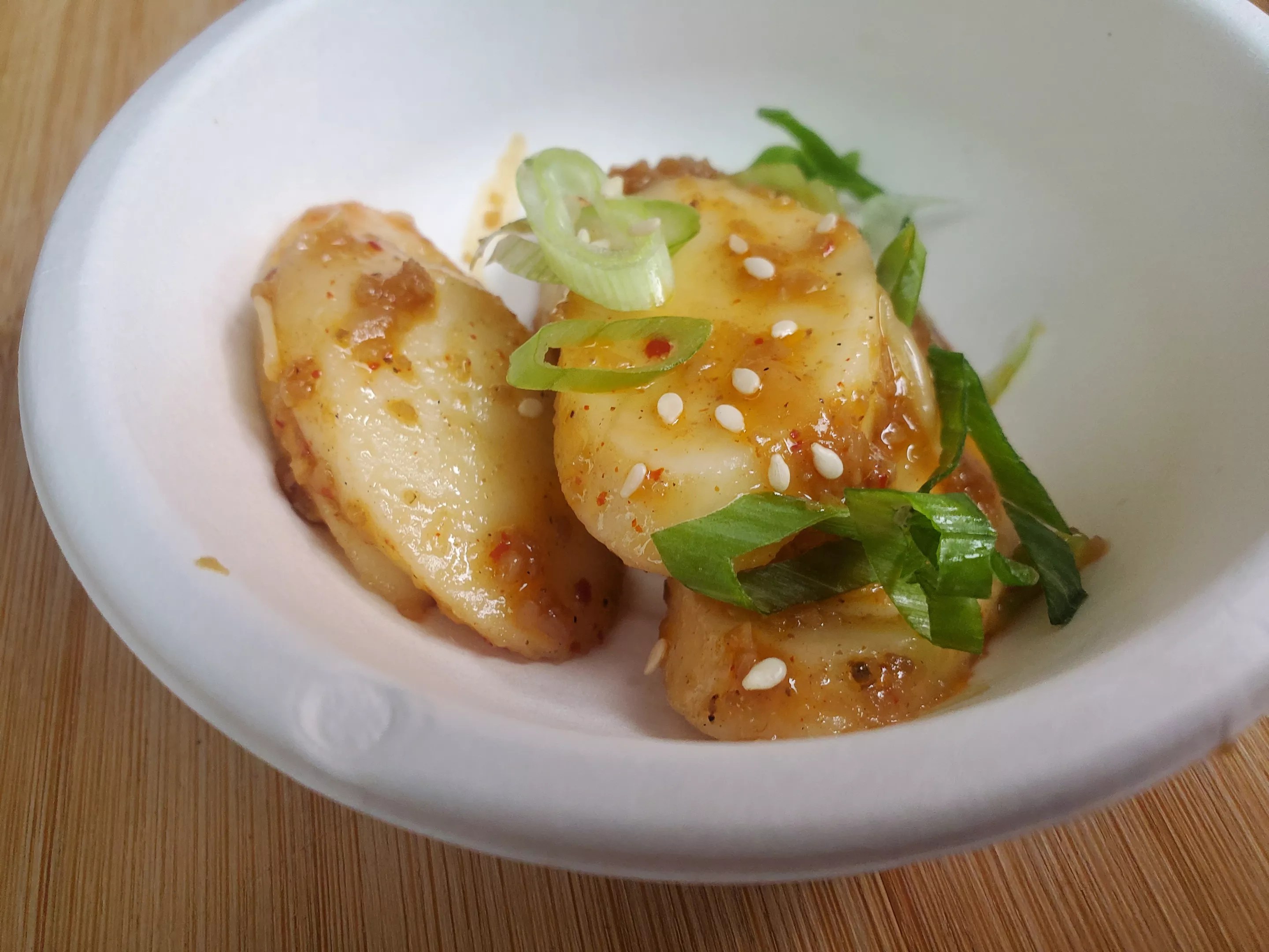 Restaurants that aren’t open yet sometimes make an appearance at food fests, offering diners a preview of what’s to come; that was the case with MAKfam, a new concept from Meta Asian Kitchen owners Ken Wan and Doris Yuen that will debut in Baker later this year. At the Big Eat, they served up a sneak peek in the form of the most flavorful (and spiciest) bite of the night: leen goh, Shanghai-style shaped rice cakes with a garlic sauce that really brought the heat.
