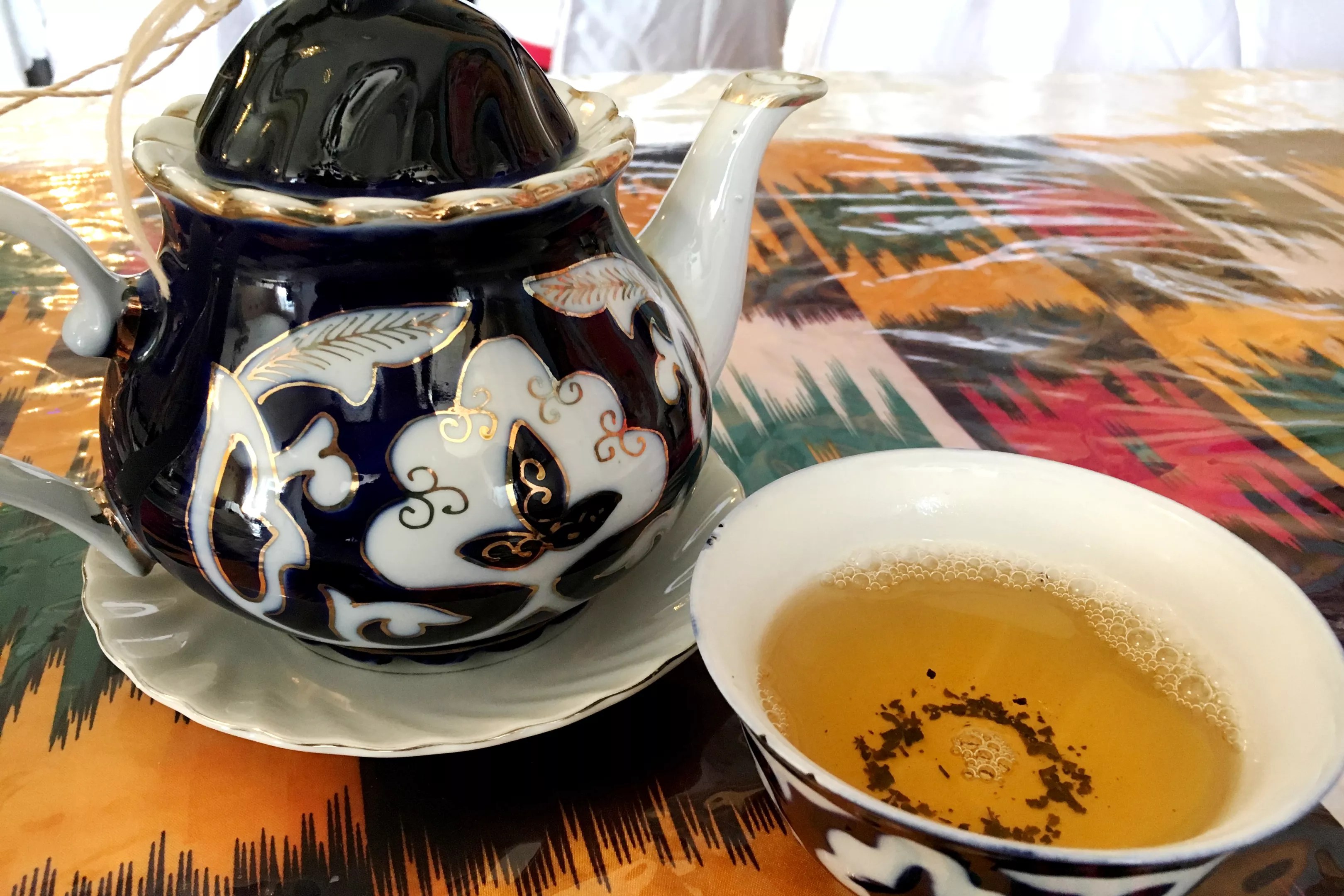 The spices in Samarkand’s food pair nicely with loose-leaf tea.