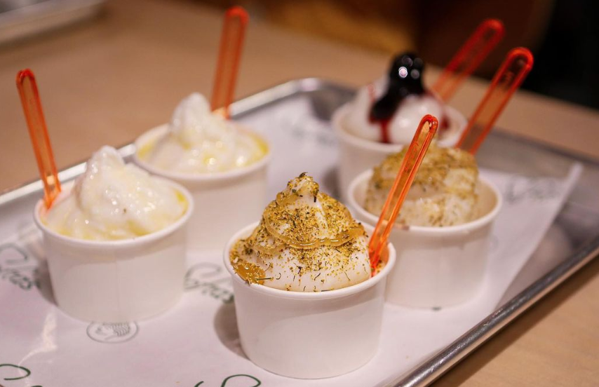 The hardest part of the process, really, is cleaning the machines, according to Claire Nafziger, general manager of Sofia’s, a Roman-style pizza concept that opened on the 16th Street Mall earlier this year. Its only dessert option is a small cup of soft-serve ice cream, available for $3 with two topping choices: olive oil and Maldon sea salt; or fennel pollen, which has a very slight black licorice flavor, and what she calls “the ultimate local honey,” which comes from hives on top of the nearby Sugar Building. There’s also a secret menu item, the Full Monty, which includes all four toppings plus a Luxardo cherry.
